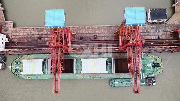 货船从我司工厂背靠的泰兴码头出发,驶往位于马拉尼昂州圣路易斯市的淡水河谷马德拉港海运码头,它也将让托坎廷斯河新铁路桥的建设迈向新征程。