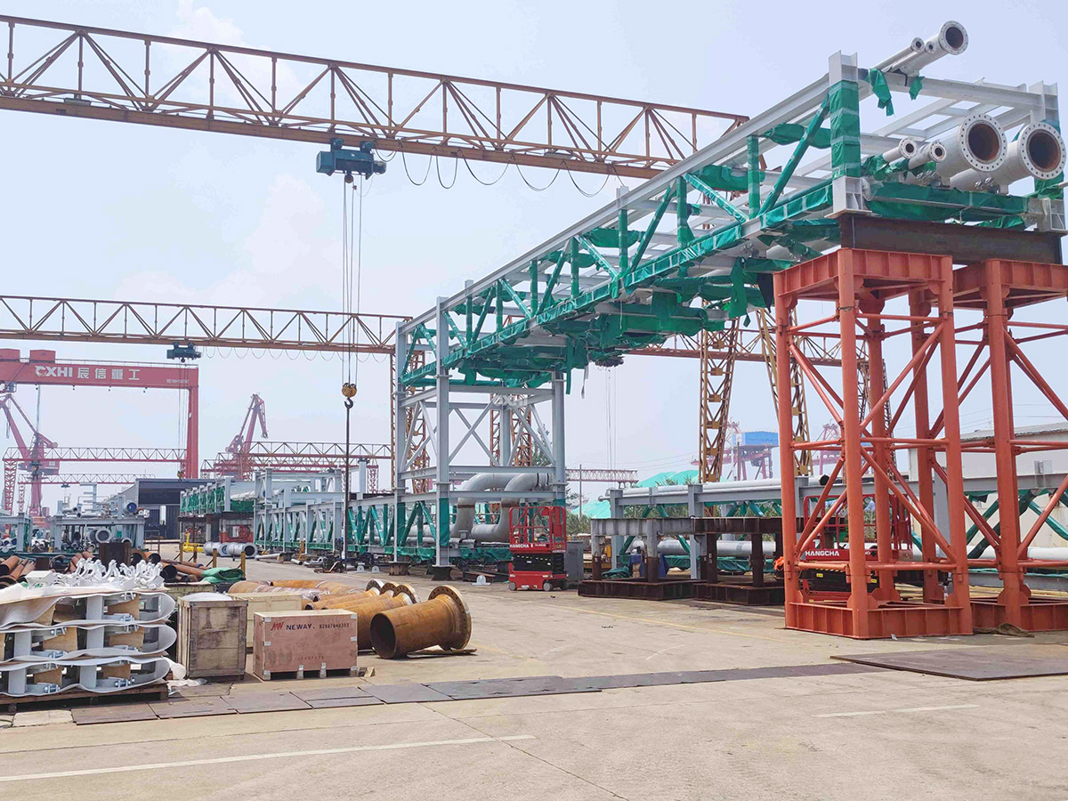 August 2 — Amid the roar of heavy cranes, the first batch of 10 pipe rack modules for the Ridley Island Energy Export Facility Project (REEF) in Canada, constructed by CXHI, were successfully loaded onto vessels at Taixing Port and set sail for Prince Rupert, British Columbia, Canada. This marks the official commencement of the delivery phase for this transnational engineering milestone.